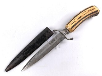 1.Weltkrieg Grabendolch mit Hirschhorngriff, Parierstange wackelt