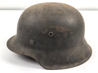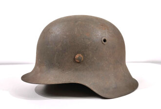 Heer, Stahlhelm Modell 1935. Vorschriftmäßig 1940 neu lackiert und das Wappen entfernt. In allen Teilen originales Stück, guter Zustand. EF66