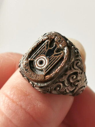 Deutschland nach 1945, Fingerring mit aufgelegtem " Deutsches Schießsportabzeichen " Innendurchmesser des Rings 18 mm