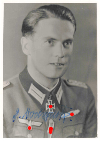 Deutschland nach 1945, Ritterkreuzträger Günther Hochgartz, eigenhändige Unterschrift auf Reprofoto