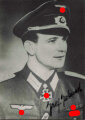 Deutschland nach 1945, Ritterkreuzträger Josef Jakwert (Panzerjäger-Abteilung 361), eigenhändige Unterschrift auf Repro-Foto, ca. 9 x 12,5 cm, guter Zustand