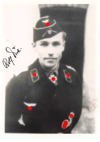 Deutschland nach 1945, Ritterkreuzträger Rolf Düe, eigenhändige Unterschrift auf Reprofoto