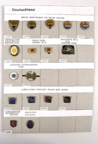 Deutschland nach 1945, Sammlung 17 Stück Abzeichen zum Thema "Frauenverbände und Kneipp Vereine " jeweils komplett mit Nadel bzw. Nadelsystem