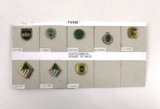 Deutschland nach 1945, Sammlung 8 Stück Abzeichen zum Thema "Forst " jeweils komplett mit Nadel bzw. Nadelsystem