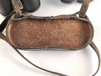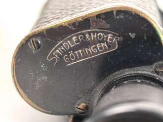 Dienstglas 6 x 30 Wehrmacht. Frühes Stück von Spindler & Hoyer Göttingen, mit defektem Trageriemen und Regenschutzdeckel. Klare Durchsicht, deutliche Strichplatte