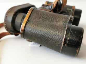 Dienstglas 6 x 30 Wehrmacht. Hersteller E.Leitz Wetzlar, klare Durchsicht, deutliche Strichplatte, Verstellringe leicht gängig. Anknöpflasche und Regenschutzdecekl datiert 1936.