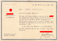 Ehrenkreuz der Deutschen Mutter zweite Stufe, in Tüte von Gottlieb & Wagner Oberstein. Dazu die zugehörige Verleihungsurkunde sowie Einladung zur Feierstunde der NSDAP Ortsgruppe Wiesbaden Biebrich mit eigenhändiger Unterschrift des Ortsgruppenleiter