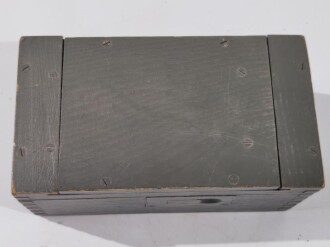 Einheitslaterne Zubehörkasten aus Holz, das Inhaltsverzeichniss sowie der Lack neuzeitlich ergänzt
