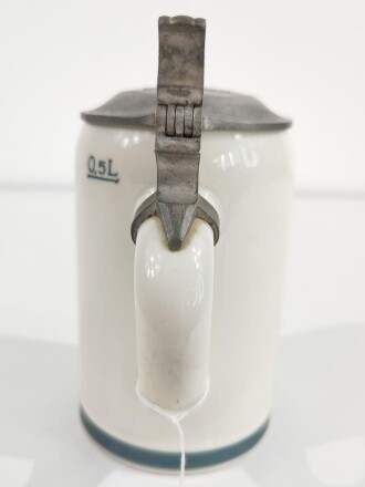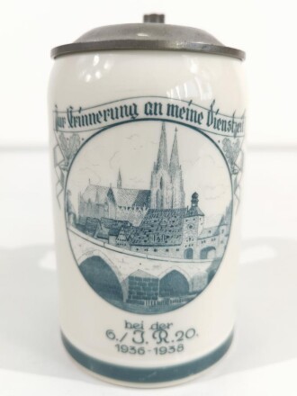 Erinnerungskrug aus Porzellan 0,5 Liter " Zur Erinnerung a.m. Dienstzeit bei der 6./ I.R. 20. 1936-1938 ". Unbeschädigt, gebraucht
