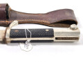 Extraseitengewehr KS98, Hersteller Eickhorn Solingen, Scheide original lackiert, in braunem Koppelschuh