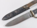 Fahrtenmesser für Angehörige der Hitlerjugend. Hersteller RZM M7/5 ( Krebs Solingen ) Emblem wackelt leicht, Scheide Originallack, Verschluss defekt