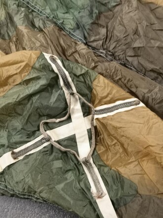 Fallschirmjäger, getarnte Kappe zum Sprungfallschirm RZ36 " Dreieckkappe mit Fangleinen" Gerät Nr. 10-436.01. Guter Zustand, die Leinen abgeschnitten