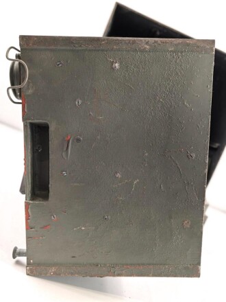 Feldfernschreiber Wehrmacht datiert 1941. Originallack, ein Verbindungskabel und Abdeckhaube fehlt, Gehäuse defekt, sonst guter Gesamtzustand, Funktion nicht geprüft