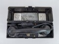Feldfernsprecher 33 Wehrmacht. Optisch guter Gesamtzustand, Funktion nicht geprüft, datiert 1941, die Hörerkapseln sowie das Kabel neuzeitlich