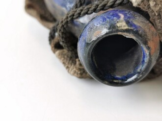 Feldflasche Deutsch 1.Weltkrieg, Bezug aus Ersatzmaterial mit undeutlich gestempeltem Hersteller "Emanuel Kahn Karlsruhe 1918"