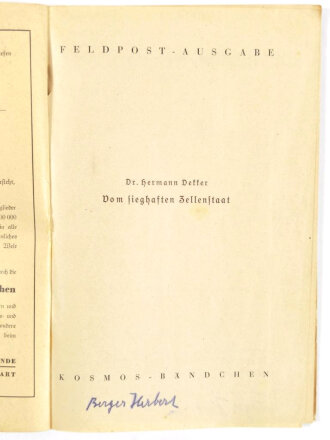 Feldpost Heft "Vom sieghaften Zellenstaat", 95 Seiten, ungelaufen, 1940er?, 13,5 x 20 cm, gebraucht