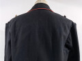 Feuerwehr Dienstjacke schwarz mit roten Vorstössen, etwa um 1920. Getragen, guter Gesamtzustand
