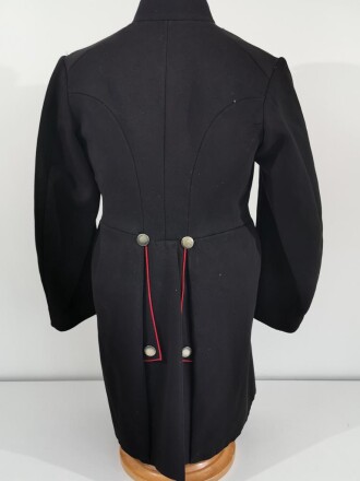Feuerwehr Gehrock wohl um 1910, schwarz mit roten Aufschlägen, Schneideretikett aus Berlin