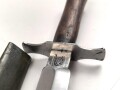 Frankreich 2.Weltkrieg, Kampfmesser . Unter deutscher Besatzung Hergestellt und so an Deutsche Soldaten in Norwegen ausgegeben. Guter Gesamtustand, die Scheide überlackiert
