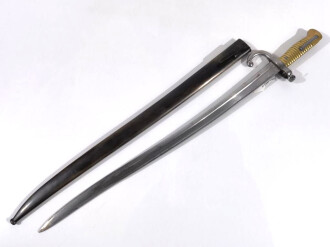 Frankreich/Kaiserreich , Chassepot Seitengewehr Modell St.Etienne von 1868 mit deutsch modifizierter Scheide ( Tragehaken ) und deutschem Truppenstempel, nicht nummerngleich