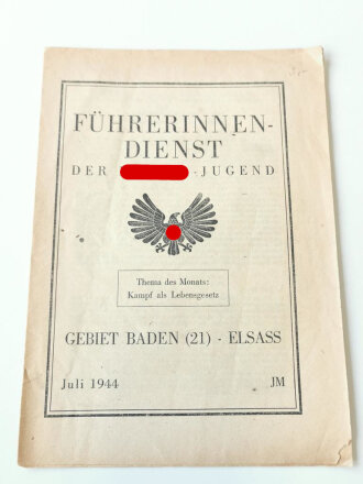 Führerinnen Dienst der Hitler Jugend, Ausgabe JM Gebiet Baden 21 Elsass vom Juli 1944
