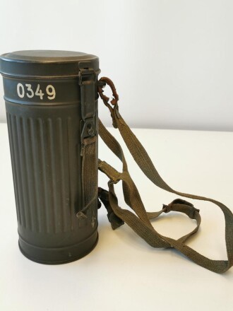 Gasmaske Wehrmacht datiert 1938. Sehr guter Zustand, zusammengehöriges Set, komplett bis auf den Lappenhalter