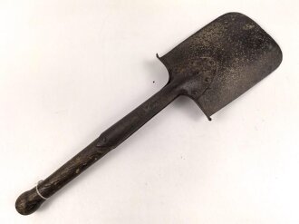 Gerader Spaten, ähnlich dem Reichswehrspaten, für mich nicht eindeutig zuzuordnen. Gesamtlänge 54cm