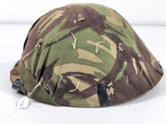 Großbritannien, Stahlhelm "Turtle " das Innenfutter datiert 1979, mit aufgeklebtem Tarnbezug