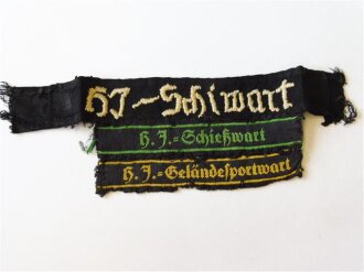 3 Ärmelbänder HJ, wohl so zusammen getragen bestehend aus HJ-Schiwart, HJ Schießwart und HJ Geländesportwart. Selten