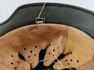 Heer, Stahlhelm Modell 1935. Während des Krieges mit neuem Innenfutter versehen und wieder verausgabt. Die reste eines neuzeitlichen Abziehbildes sichtbar, darunter apfelgrüner Originallack, Hersteller 68 für Quist
