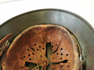 Heer, Stahlhelm Modell 1935, zeitgenössisch überlackiertes Stück, danach deutlich weitergetragen. Die Nieten waren nie offen