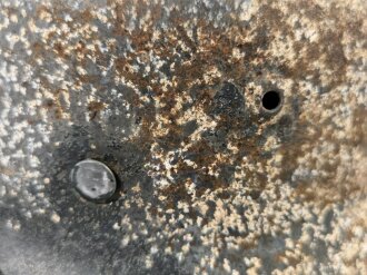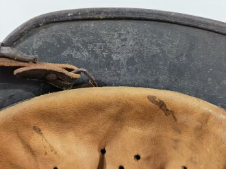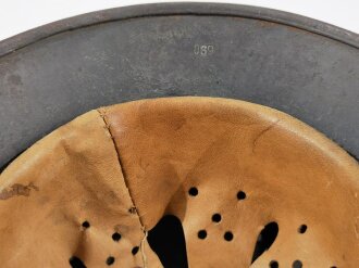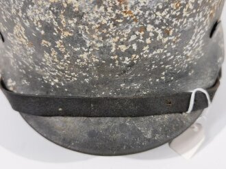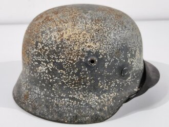 Heer, Stahlhelm Modell 1940. Komplett zusammengehöriges Stück. Über den ersten Lack wurde bei diesem Stück Wintertarnung aufgetragen, darauf dann nochmals feldgrauer Lack.