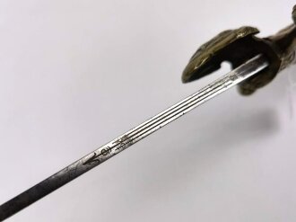 Hirschfänger ohne Scheide, die Klinge beidseitig ziseliert, gereinigt. Gesamtlänge 67cm