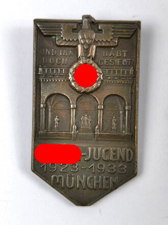 Hitler- Jugend " Gedenkfeierabzeichen Hitlerjugend 1923-1933 München " Rückseitig mit Hersteller H.Wittmann, München