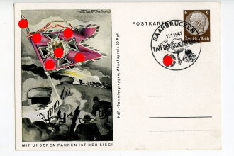 III. Reich - farbige Propaganda-Postkarte - " Mit unseren Fahnen ist der Sieg"