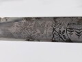 Jagdlicher Hirschfänger, beideseitig geätzte Klinge ohne Hersteller. Ungereinigtes Stück, guter Gesamtzustand
