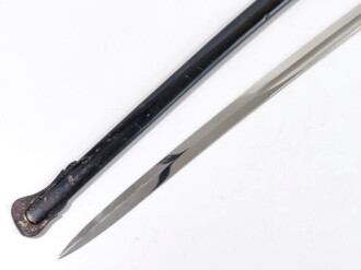 Vergoldung berieben , Stahlscheide mit 2 Trageringen nach altem Muster, Gesamtlänge 100 cm Dieser Artikel fällt in den Anwendungsbereich des WaffG und wird nur an Personen geliefert, die das 18. Lebensjahr vollendet haben.