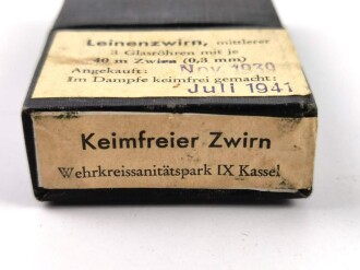 "Keimfreier Zwirn" in Verpackung, Wehrkreis Sanitätspark Kassel