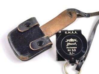 Kompass mit Fangriemen in Tasche Wehrmacht. Hersteller Busch Rathenow. Kammerstück Marine Artillerie Abteilung ?