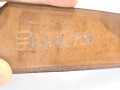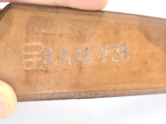 Koppelriemen Wehrmacht, Kammerstück datiert 1938. Ursprünglich ungeschwärzt, aber mit brauner Schuhcreme bearbeitet. Gesamtlänge 91cm, Gegenhalt aus Leichtmetall