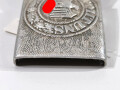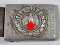 Koppelschloss für Mannschaften des Heeres aus Aluminium, getragenes Stück , Die Lederzunge gestempelt Jul.Kremp Lüdenscheid 1940