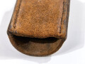 Koppelschuh für einen Hirschfänger , Alter und Herkunft unbekannt, Leder mürbe