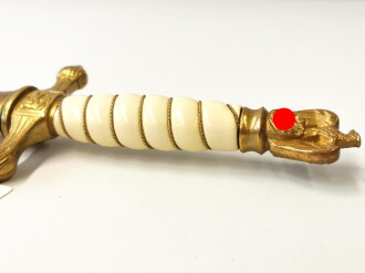 Kriegsmarine, Dolch für Offiziere. Beidseitige Ätzung von E.u.F.Höster Solingen, gehämmerte Scheide. Ordentliches Stück in gutem Zustand