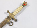 Kriegsmarine, Dolch für Offiziere von Eickhorn Solingen mit beidseitiger Klingenätzung, getragenes Stück, die Griffwicklung fehlt. Ungereinigtes Stück