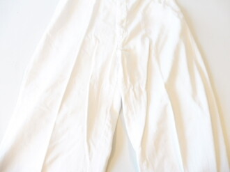 Kriegsmarine, weißes Jackett mit passender, gerader Hose. Getragenes Set in gutem Zustand. Der Brustadler mit eigenwilliger Befestigung gehört original dazu