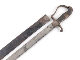 Kurzsäbel, Keilklinge Breite 3,55 cm, Gesamtlänge o.Scheide 72,5cm , Ortblech sowie Trageknopf der Scheide fehlt , Griff wie schwerer Kavalleriesäbel M11/48, eventuell Polizei Sachsen ?