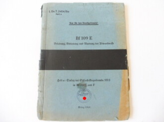 L.Dv.T.2404/Bo, Haft a. " Einsatz der Schlachtfliegerbombe SD2 in BF109 E und F" vom März 1941. Kleinformat, 12 Seiten plus 10 Abbildungen.