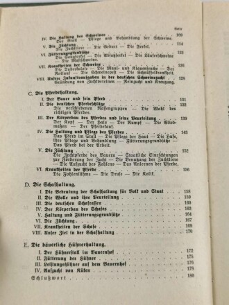 Landwirtschaftliche Lehrbuch-Reihe 3. Teil "Viehhaltung und Fütterung" Reichsnährstand , 256 Seiten, datiert 1937, DIN A5, stark gebraucht