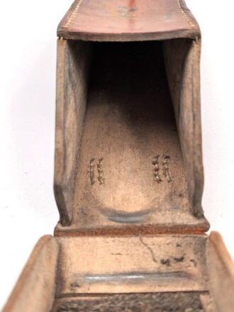 Lederner Behälter für Deckungsspiegel zum Richtkreis 31 der Wehrmacht, datiert 1939, ungereinigtes Stück