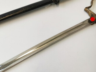 Löwenkopfsäbel für Offiziere des Heeres, Model Nr. 1710 " Blücher" von Eickhorn Solingen. Zusammengehöriges Stück, einseitig gedunkelt, Scheide original lackiert